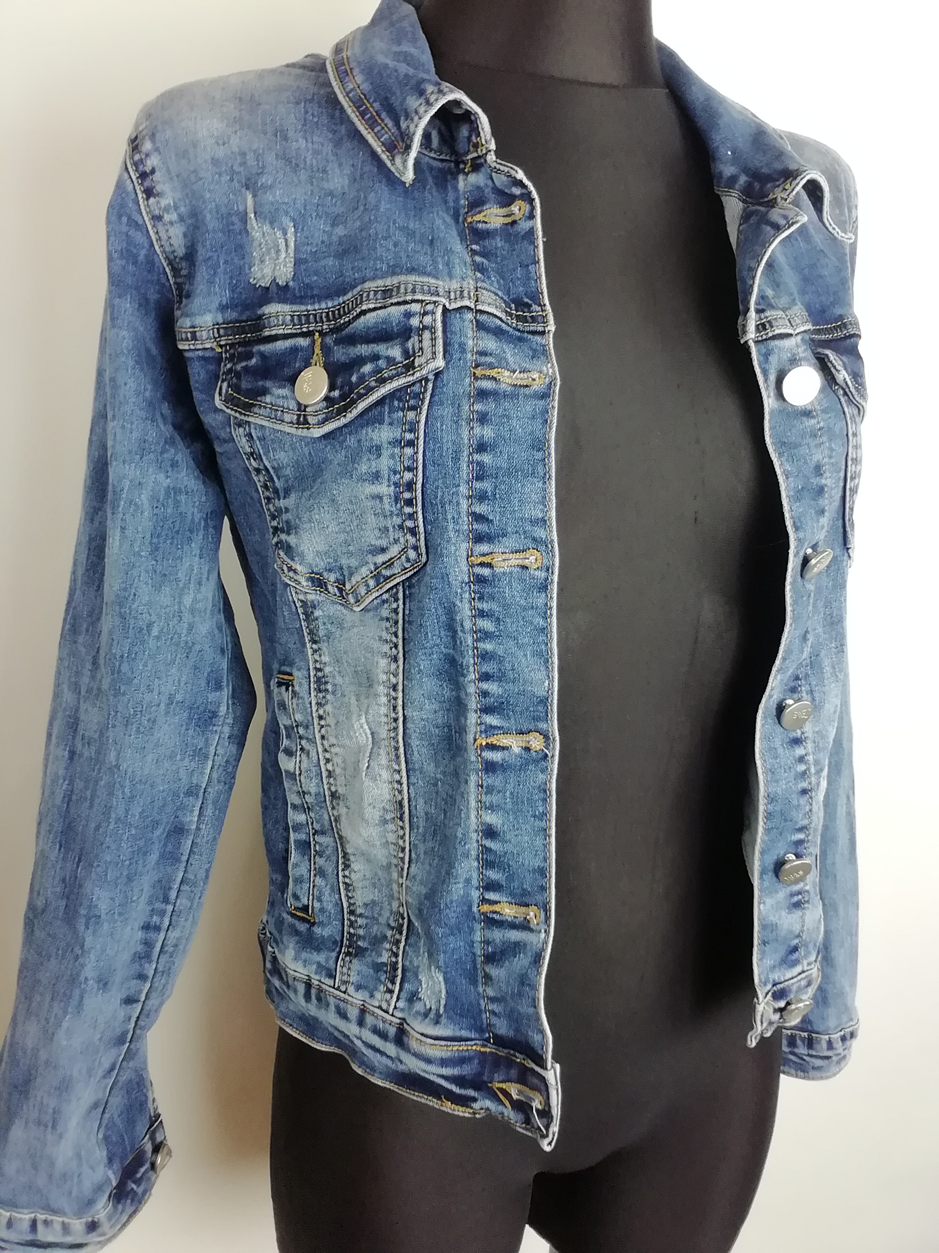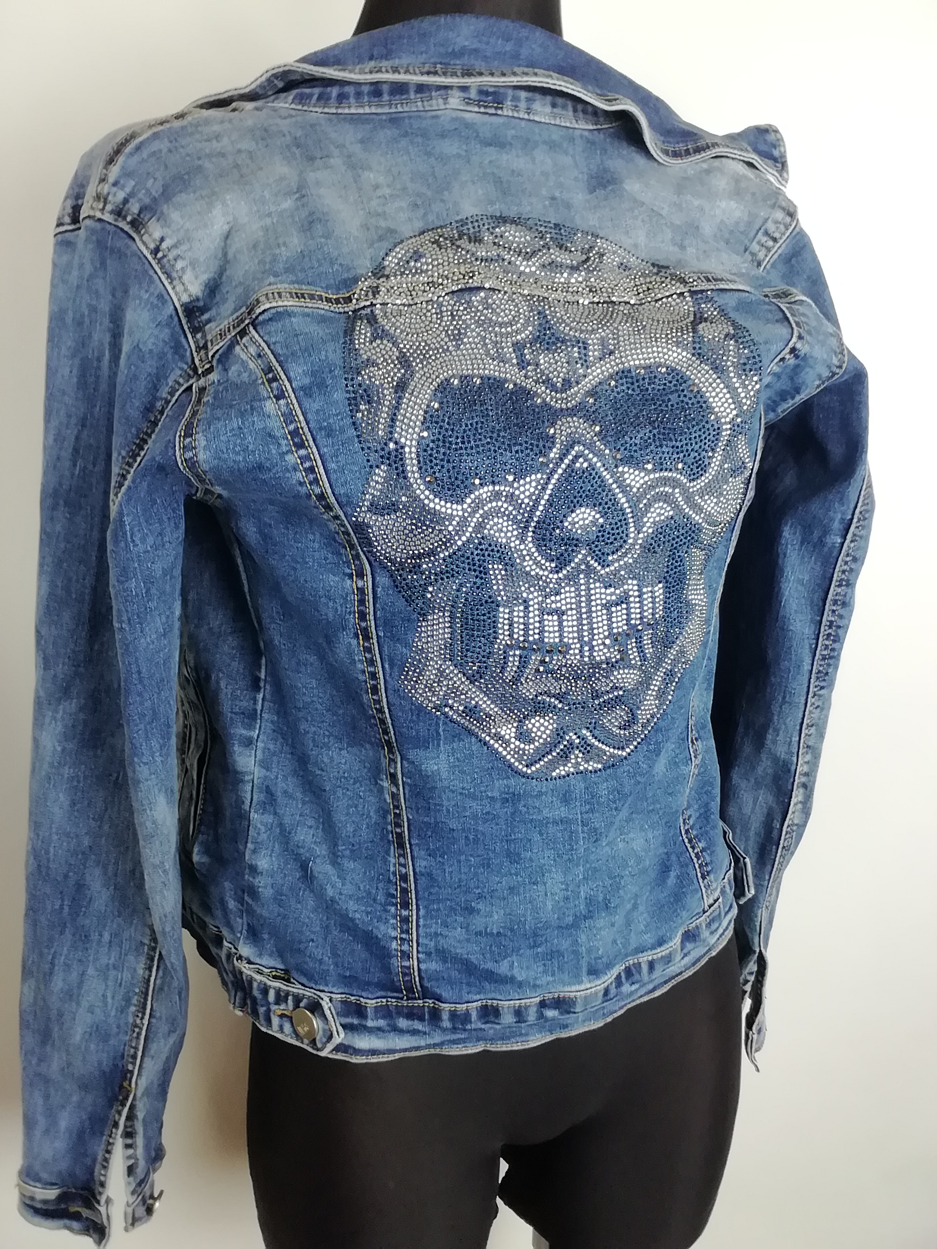Kurtka katana jeans damska z czaszką w cekiny rozmiar 36