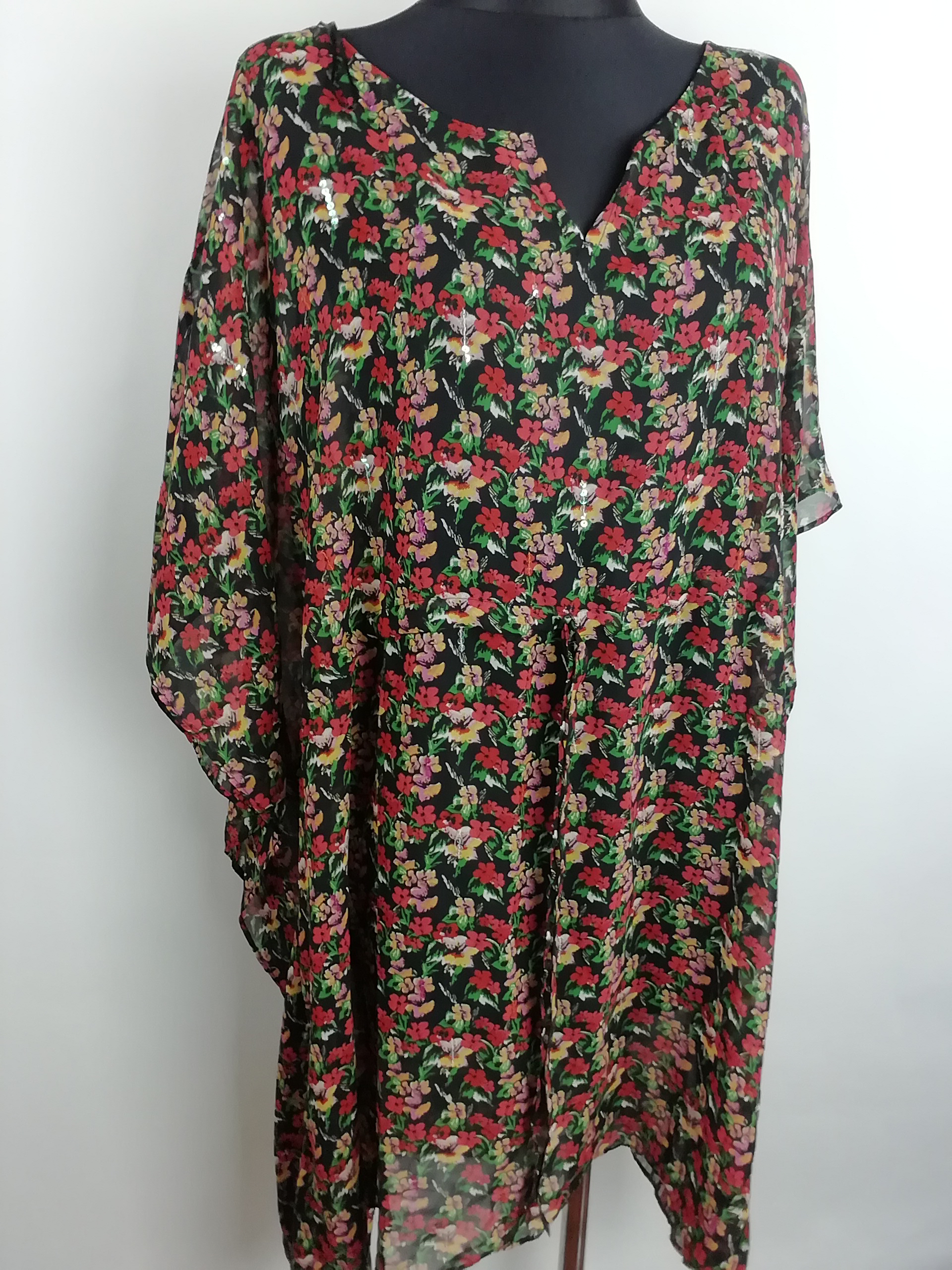 Obwód pod pachami 150 cm w pasie 155 cm biodra rozkloszowana długość 104 cm stan bardzo dobry